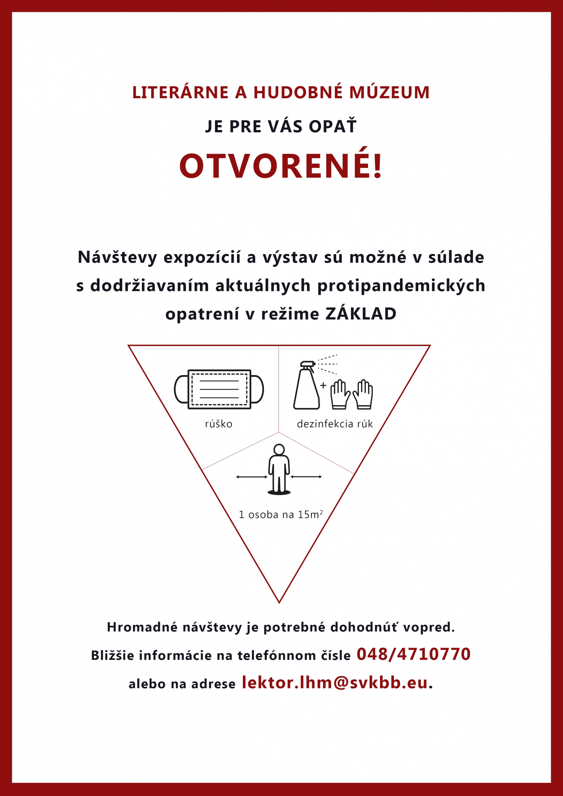 OZNAM https://www.svkbb.eu/wp-content/uploads/2022/01/oznam-na-web-scaled.jpg Od Literárne a hudobné múzeum|2022-01-19T14:58:51+01:0019. januára 2022|Kategórie: Blog, LHM, SVKBB|Komentáre vypnuté na OZNAM Zdieľajte tento príspevok, Vyberte si svoju platformu. FacebookXLinkedInTumblrPinterest Súvisiace príspevky Ľudové hudobné nástroje na Slovensku 11. augusta 2025 Bábkarský salón 29. júla 2025 OZNAM O OTVORENÍ 26. februára 2024 Za Ladislavom Burlasom … 14. februára 2024 23. januára 2024