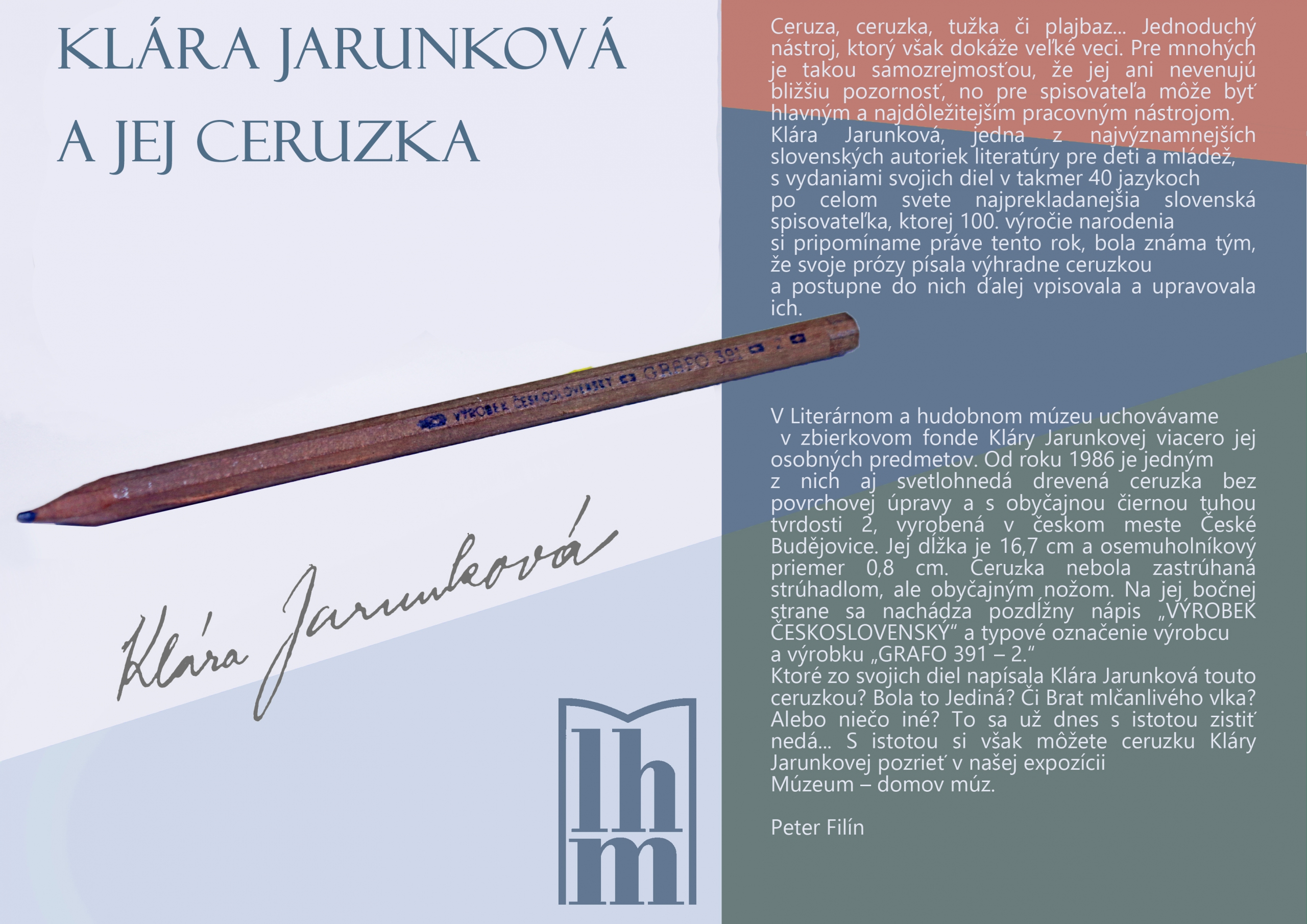 Príbeh predmetu Kláry Jarunkovej https://www.svkbb.eu/wp-content/uploads/2022/07/ceruza2-kopie-scaled.jpg Od Literárne a hudobné múzeum|2022-07-22T15:36:59+02:0022. júla 2022|Kategórie: Blog, LHM, SVKBB|Komentáre vypnuté na Príbeh predmetu Kláry Jarunkovej Zdieľajte tento príspevok, Vyberte si svoju platformu. FacebookXLinkedInTumblrPinterest Súvisiace príspevky Ľudové hudobné nástroje na Slovensku 11. augusta 2025 Bábkarský salón 29. júla 2025 OZNAM O OTVORENÍ 26. februára 2024 Za Ladislavom Burlasom … 14. februára 2024 23. januára 2024