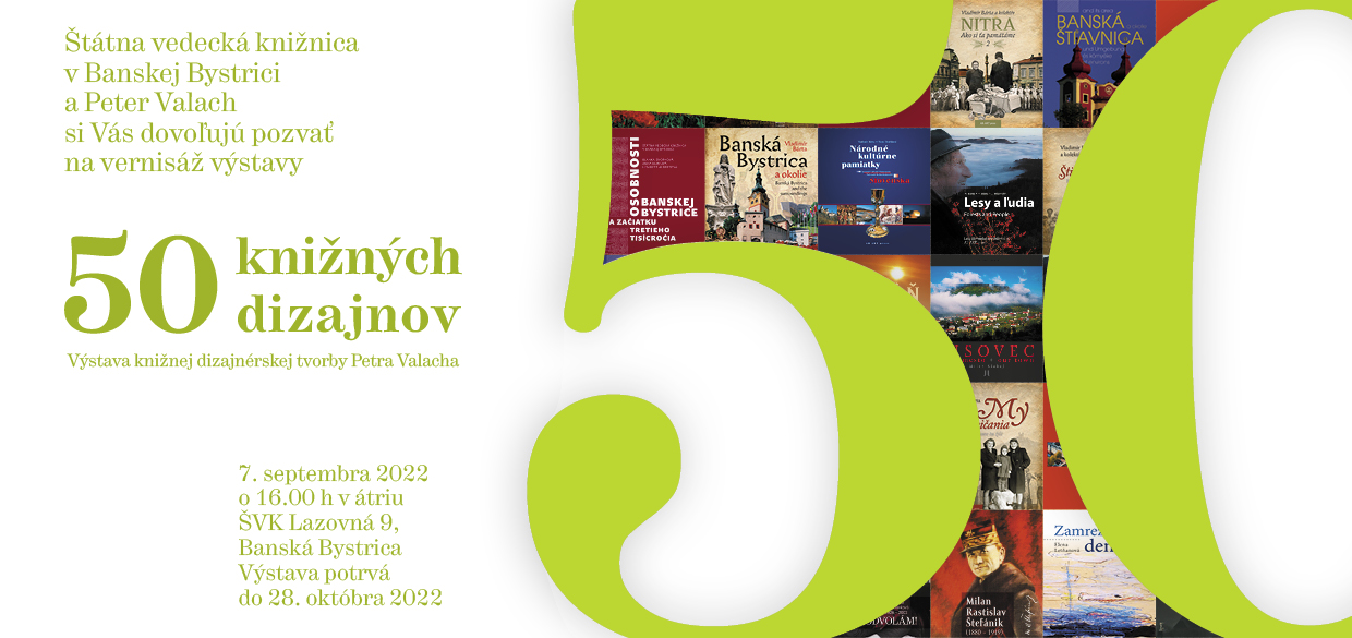 50 knižných dizajnov Štátna vedecká knižnica v Banskej Bystrici a Peter Valach si Vás dovoľujú pozvať na vernisáž výstavy 50 knižných dizajnov Od Peter Sotik|2022-08-31T14:45:04+02:0031. augusta 2022|Kategórie: Uncategorized|Komentáre vypnuté na 50 knižných dizajnov Zdieľajte tento príspevok, Vyberte si svoju platformu. FacebookXLinkedInTumblrPinterest Súvisiace príspevky OZNAM 26. júna 2023 Španielske divadlo 3. marca 2023 Príbeh predmetu Ľubice Charvátovej 1. apríla 2022 Vylúštiš ma? 7. októbra 2021 Milí naši návštevníci, predstavujeme program na mesiac august. Tešíme sa na Vás! 22. júla 2021