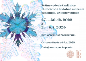 Oznam pre návštevníkov múzea https://www.svkbb.eu/wp-content/uploads/2022/12/zatvorene2-scaled.jpg Od Literárne a hudobné múzeum|2022-12-05T15:17:27+01:005. decembra 2022|Kategórie: Blog, LHM, SVKBB|Komentáre vypnuté na Oznam pre návštevníkov múzea Zdieľajte tento príspevok, Vyberte si svoju platformu. FacebookXLinkedInTumblrPinterest Súvisiace príspevky Ľudové hudobné nástroje na Slovensku 11. augusta 2025 Bábkarský salón 29. júla 2025 OZNAM O OTVORENÍ 26. februára 2024 Za Ladislavom Burlasom … 14. februára 2024 23. januára 2024